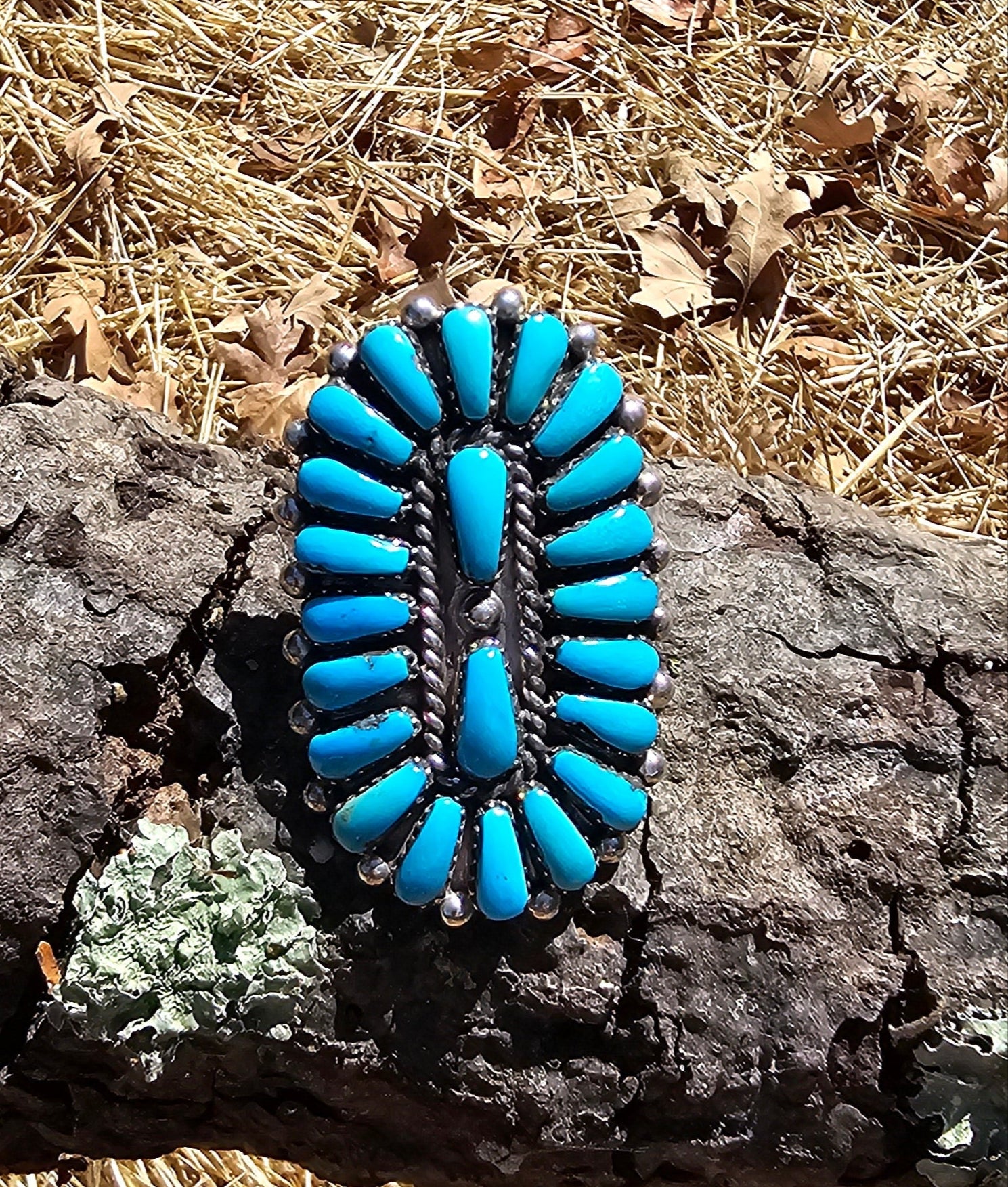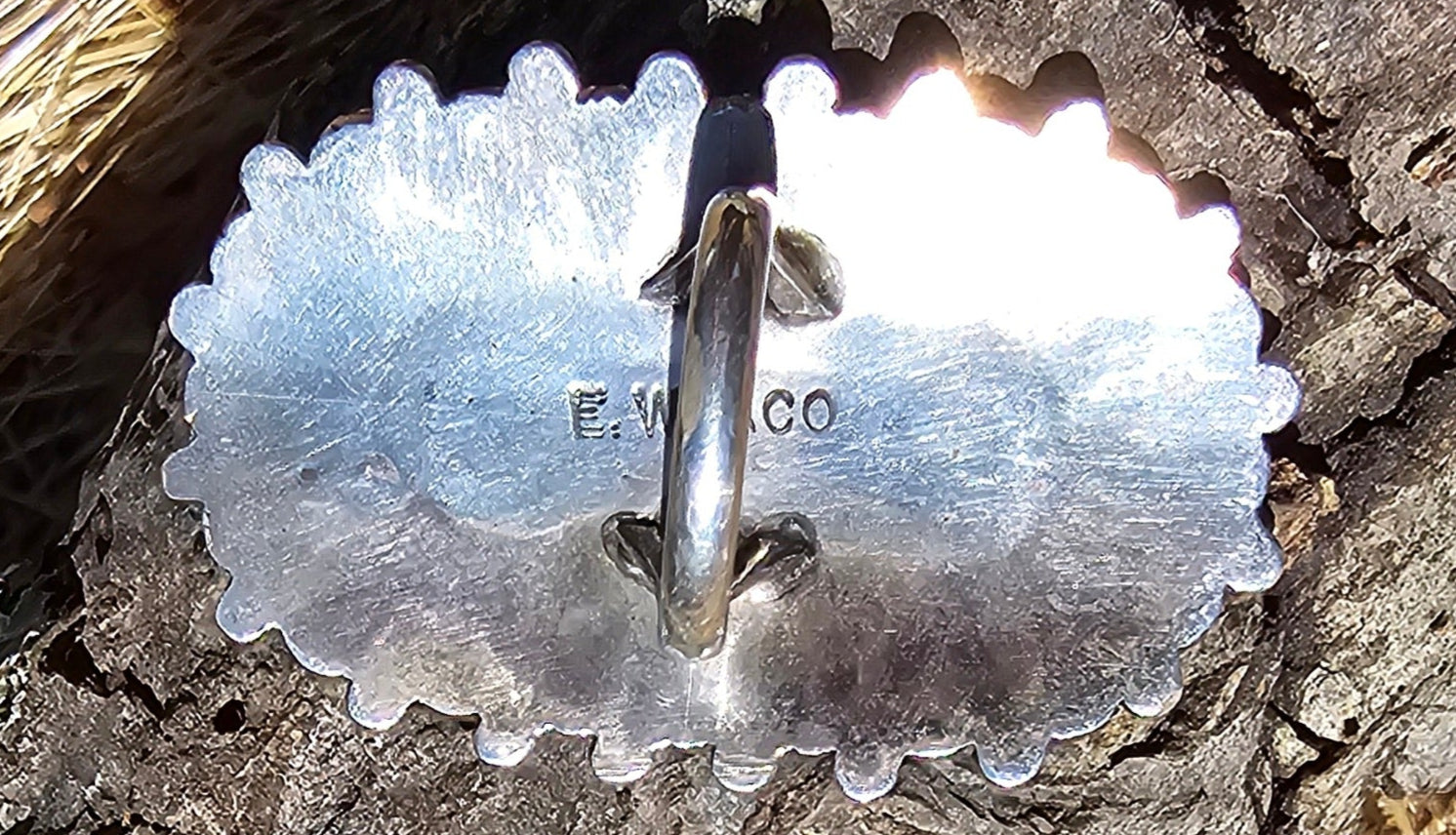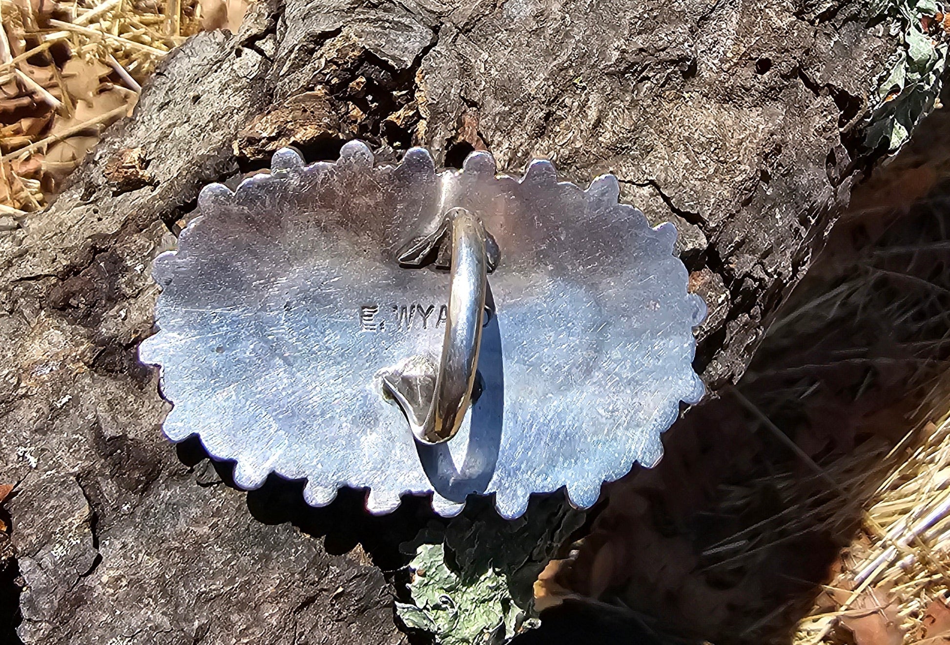 Signed by Zuni artist, Elanda Wyaco. Sterling silver.