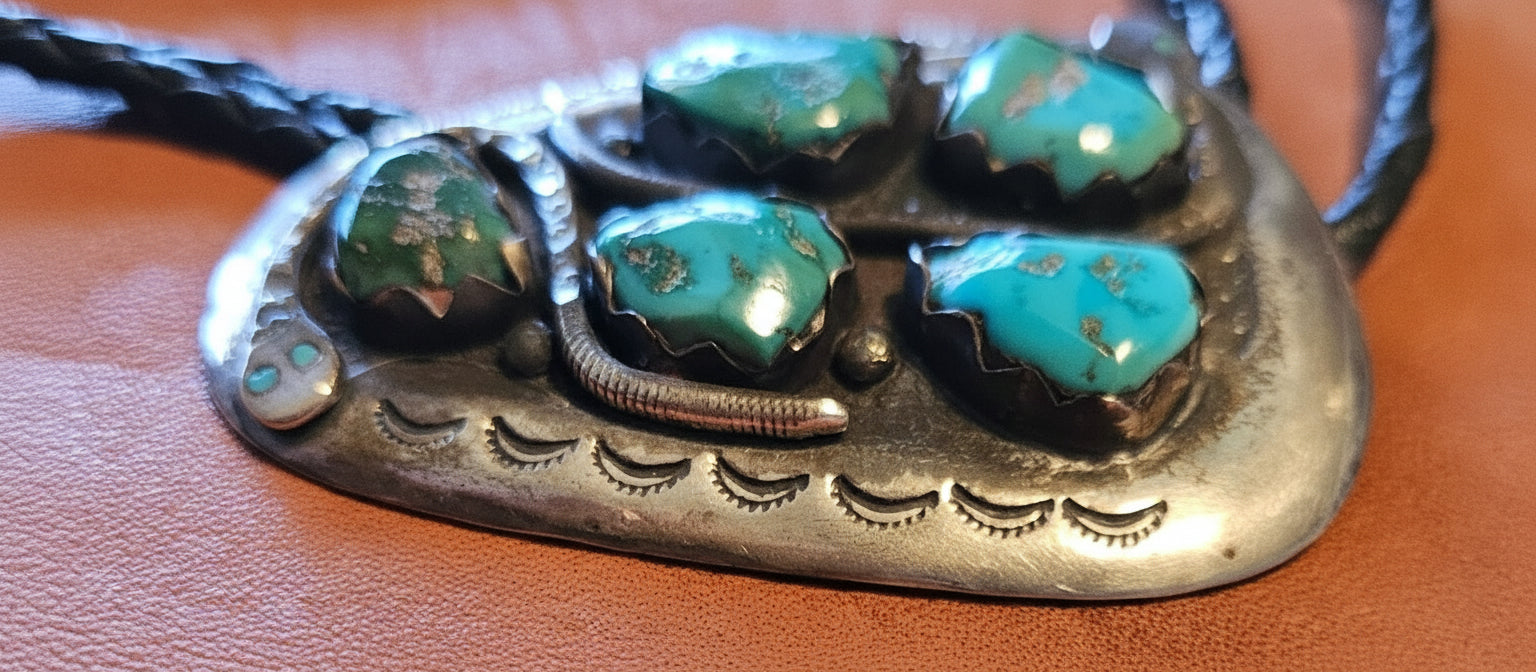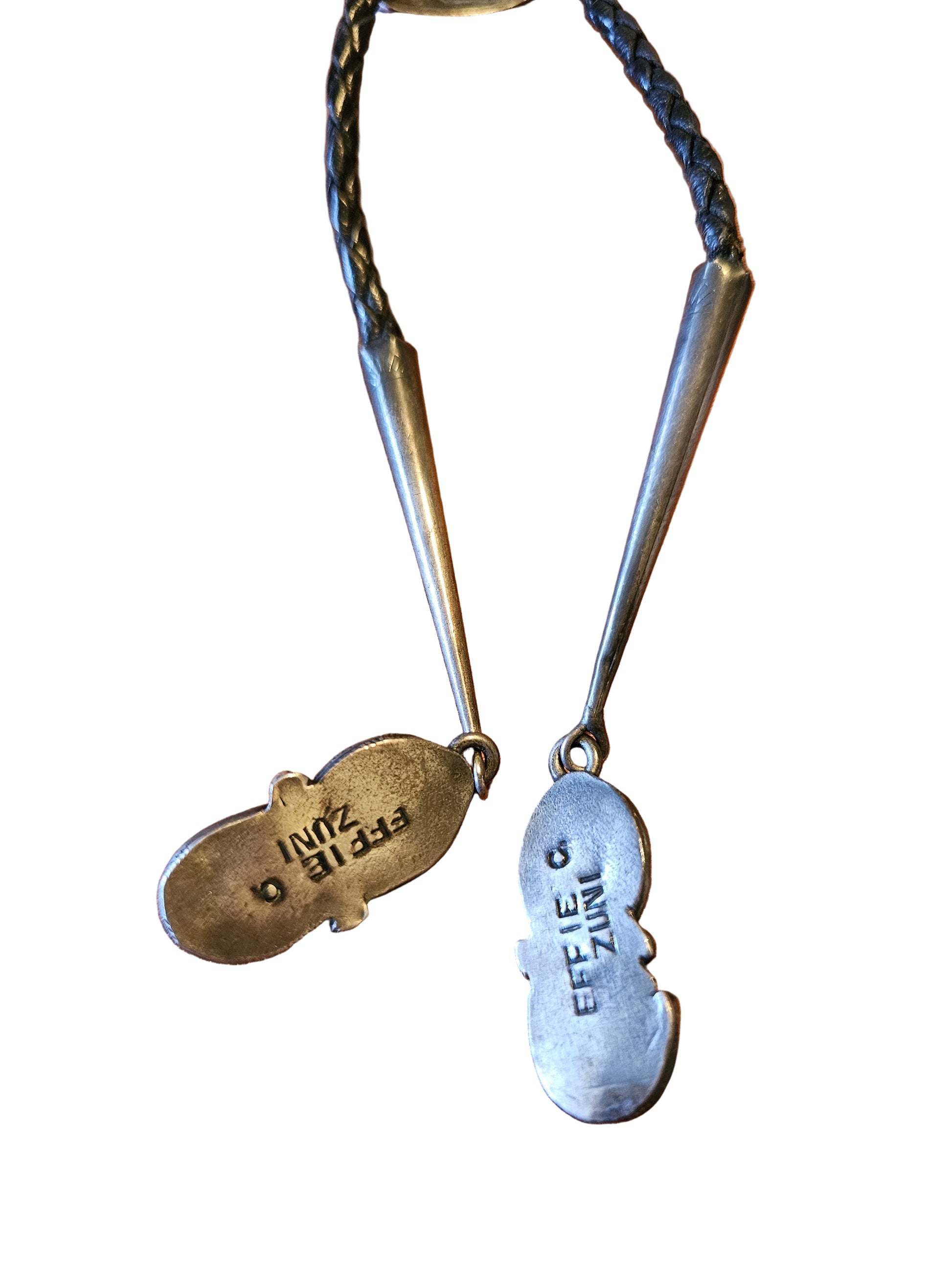 This bolo tie is an early handmade work by Effie Calavaza