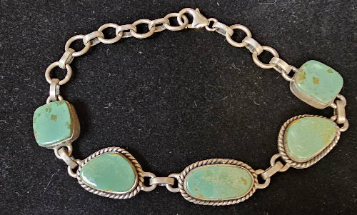 Amazing Emerald Valley turquoise and sterling silver adjustable bracelet. Emerald Valley comes from Nevada. Close to the Royston mine. EV is known for the deep green to classic Nevada green hues. EV often has brown matrix and is a highly desirable type of turquoise.