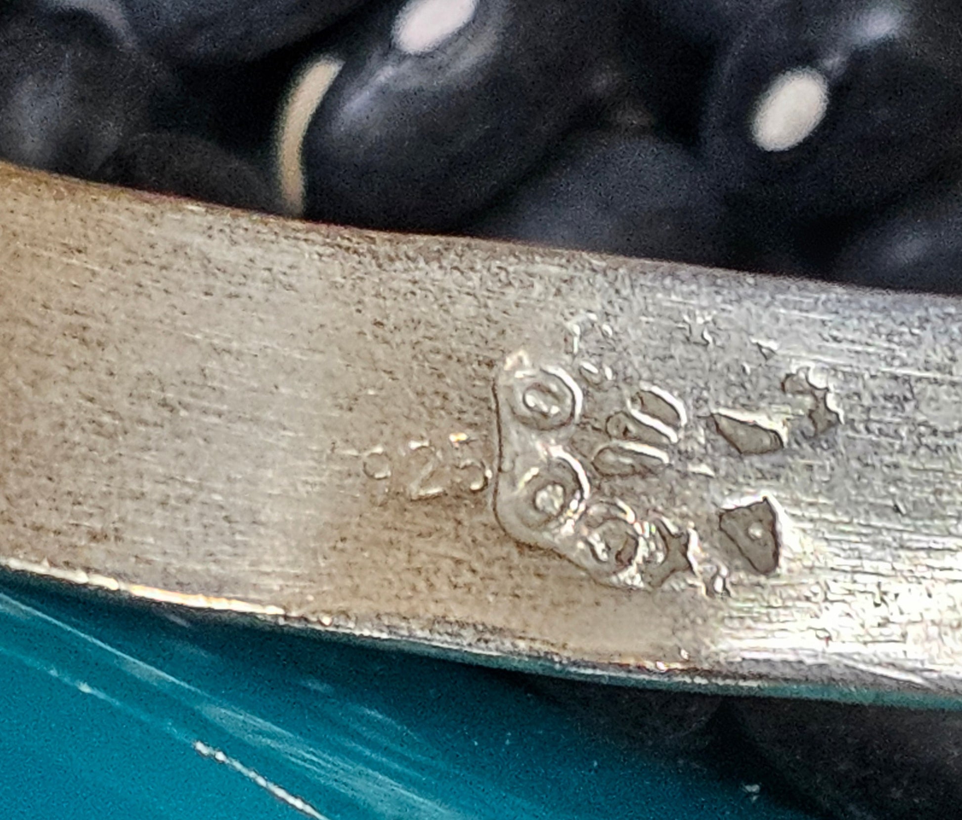 There is a TAXCO stamp on one bracelet and what appears to be MEXICO 925 on the other. I also see the letters "TA." There is a animal figure or sun stamp also. These beauties are in great shape, but were definitely loved.