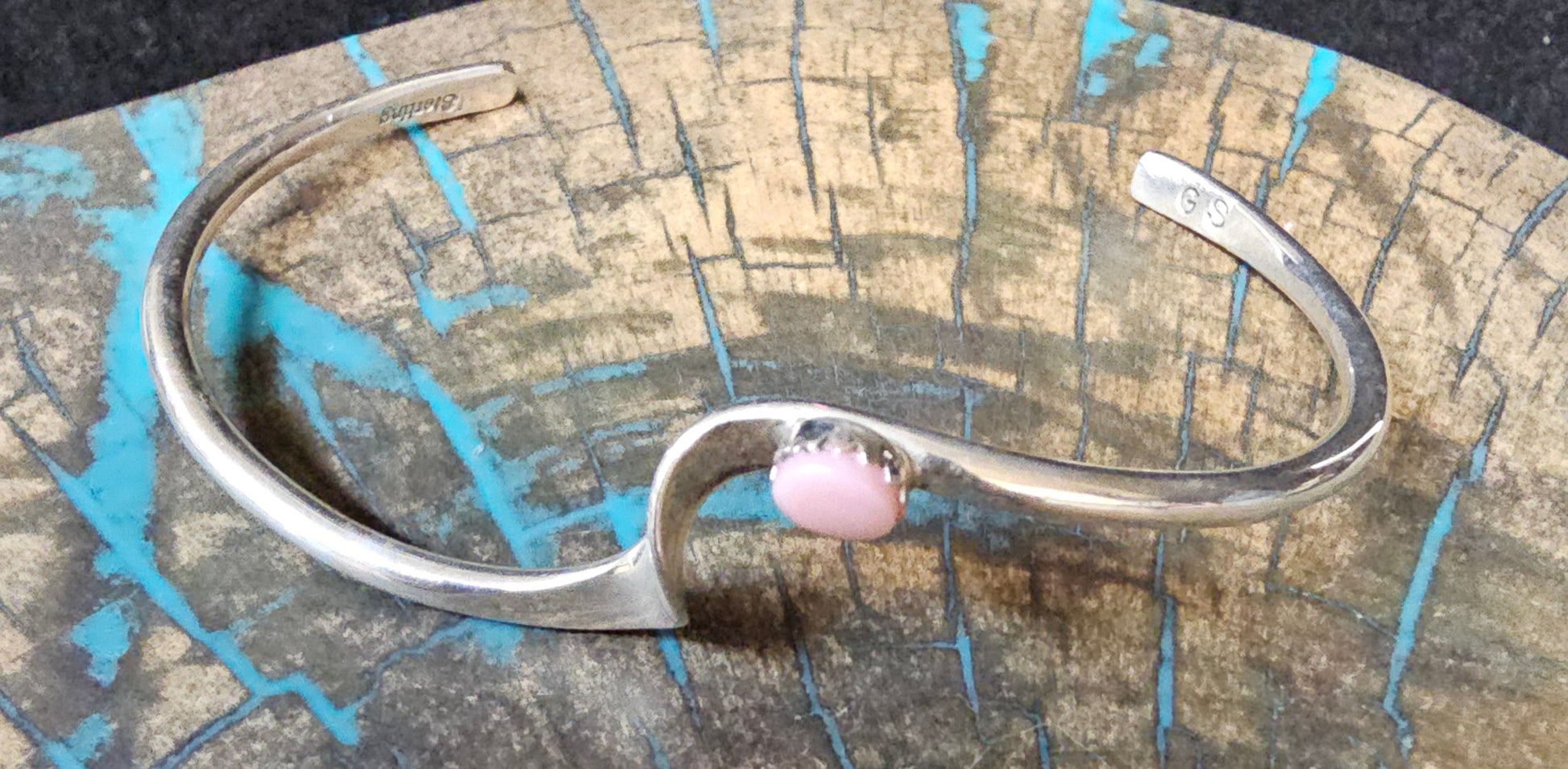 Pink Conch & Sterling Silver Cuff Native American Made & Signed GS