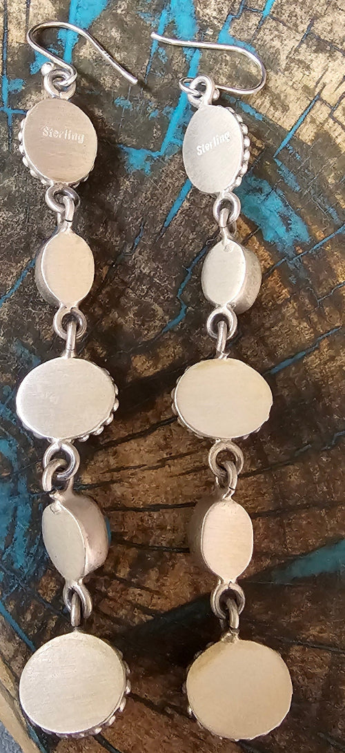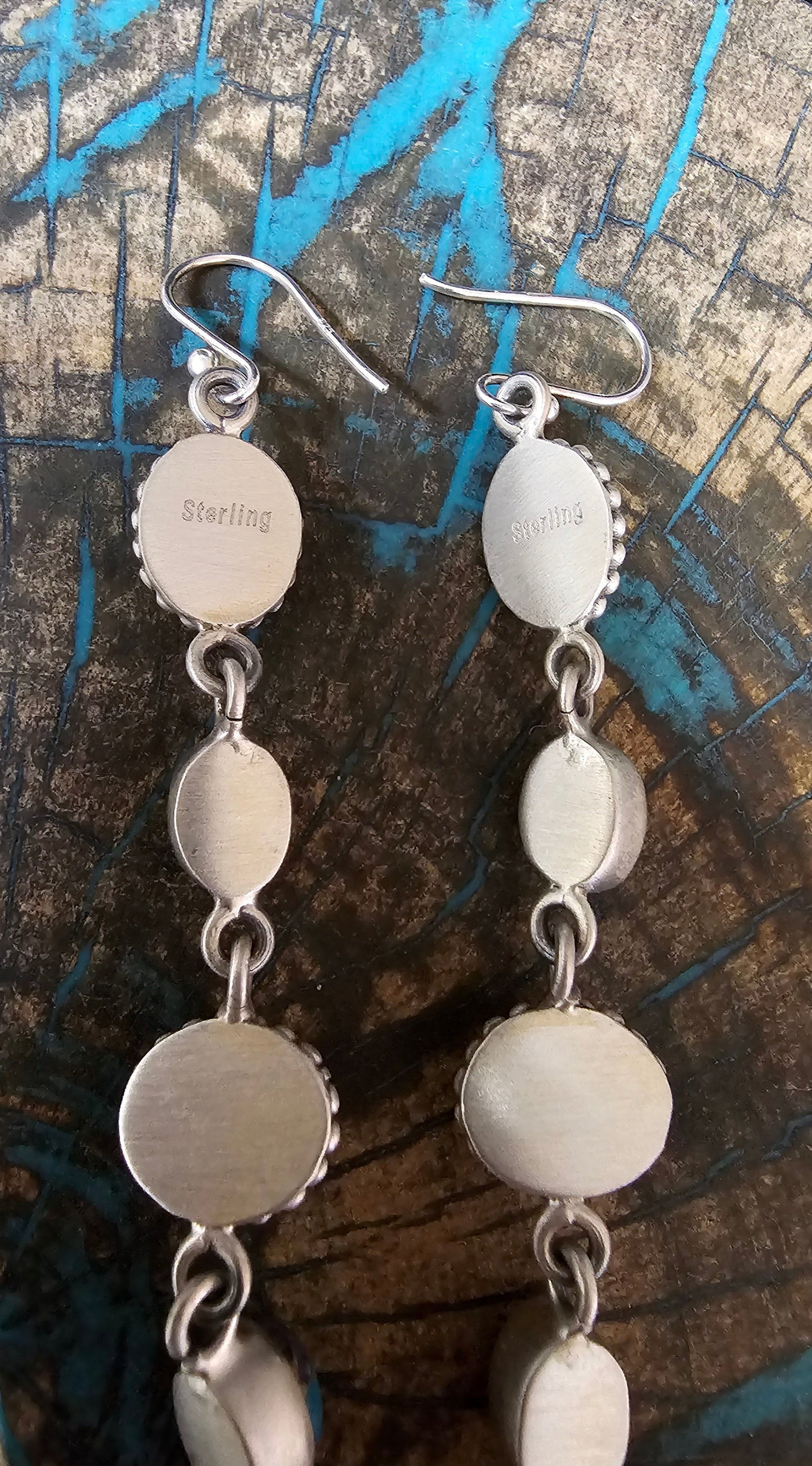 Pink Dahlia Long Dangle Earrings 3" Sterling Silver Southwestern