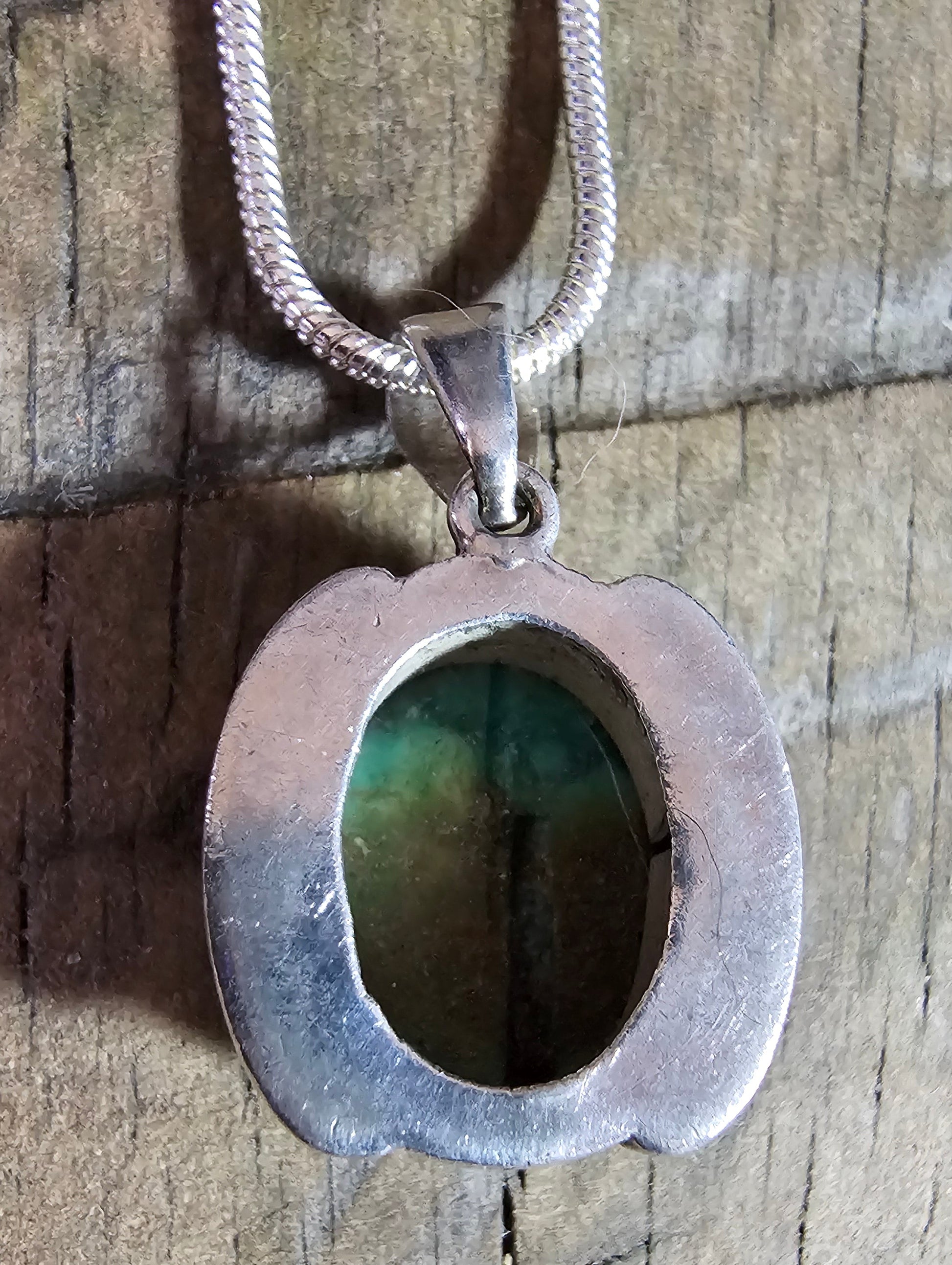 Beautiful open back turquoise sterling silver pendant, most likely Hubei. If it is Hubei, it comes from the Hubei Province in China. Hubei turquoise was first discovered in the late 80s while searching for iron ore.