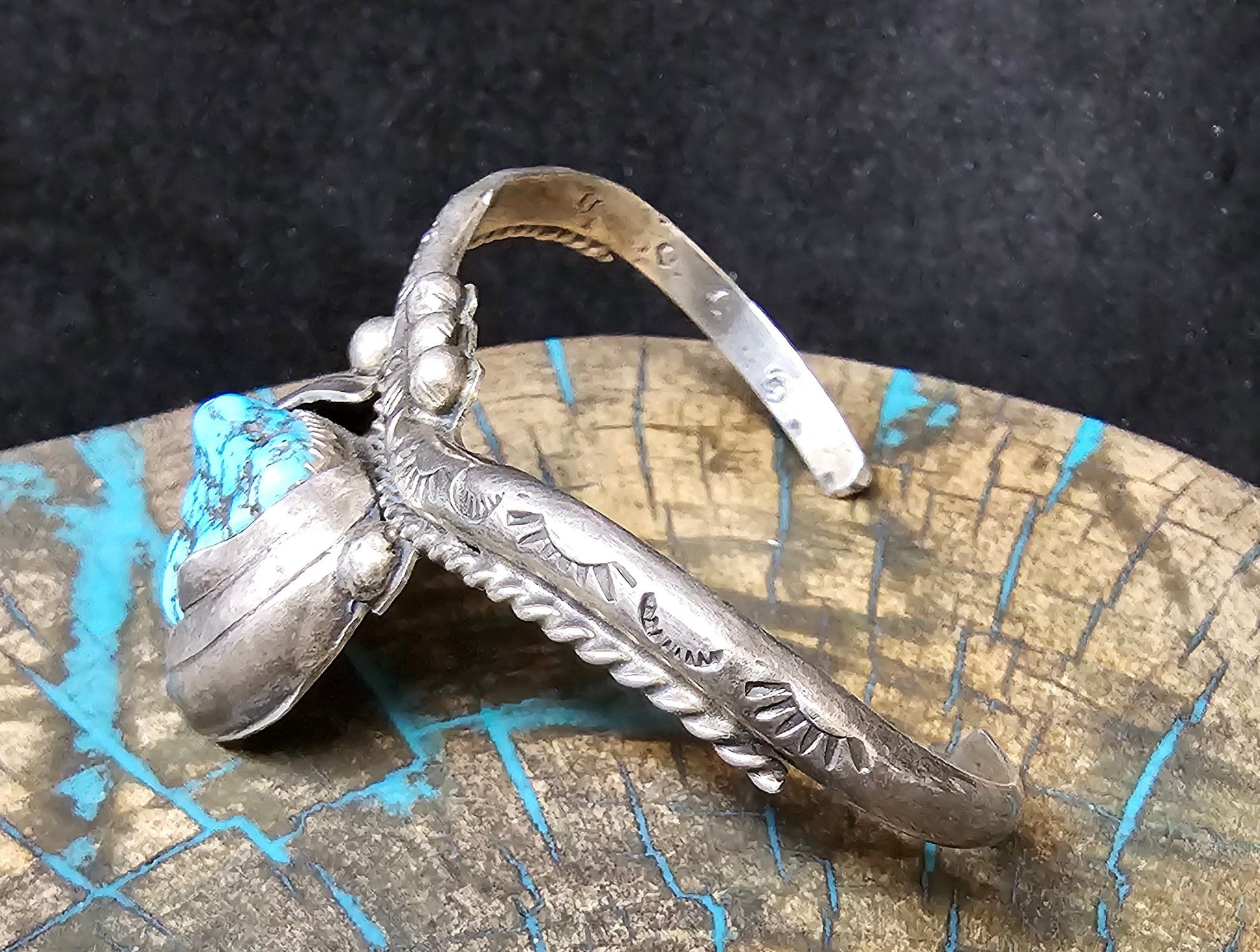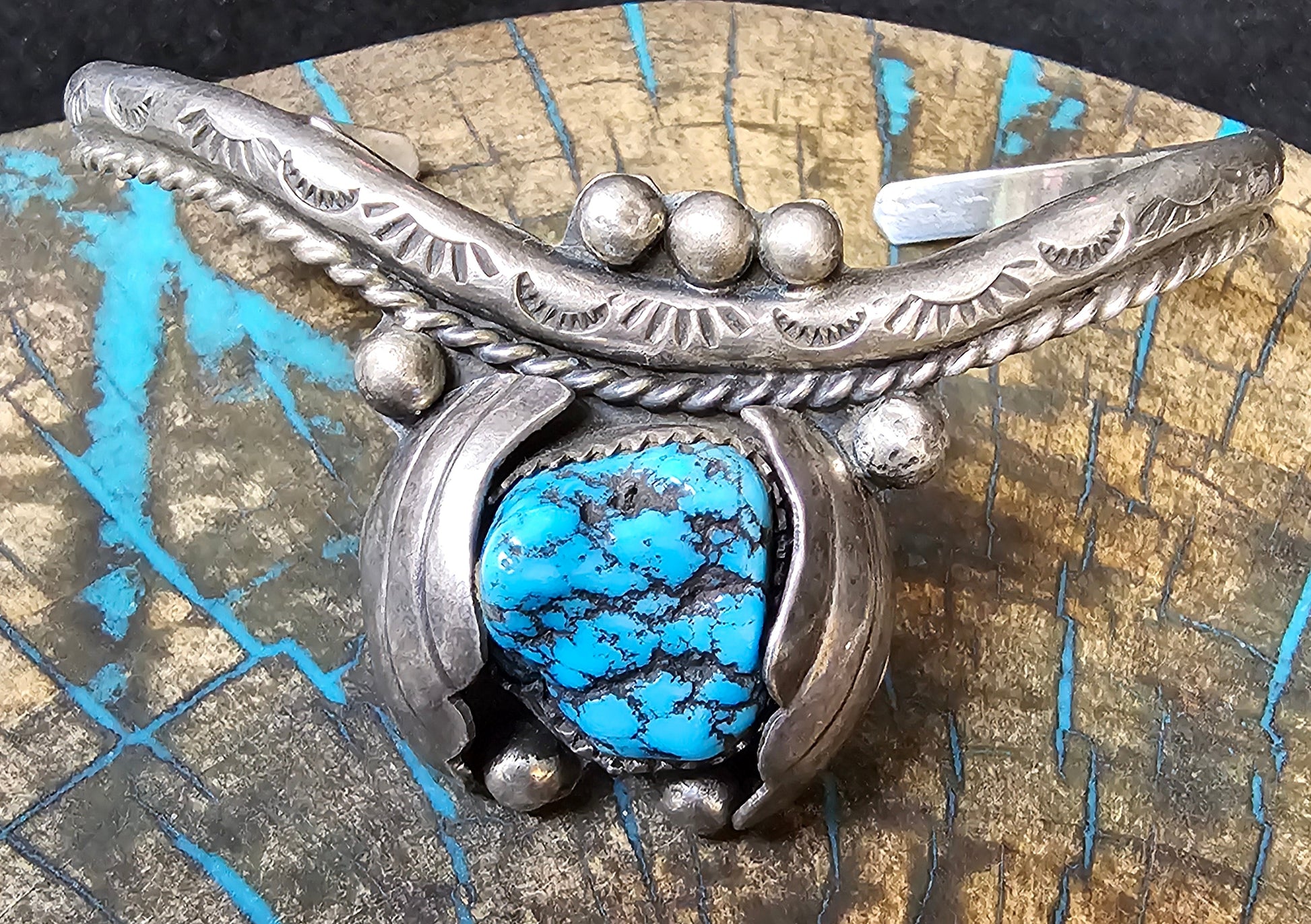 Vintage Navajo Cuff Sterling Silver & Turquoise Trading Post Mark
