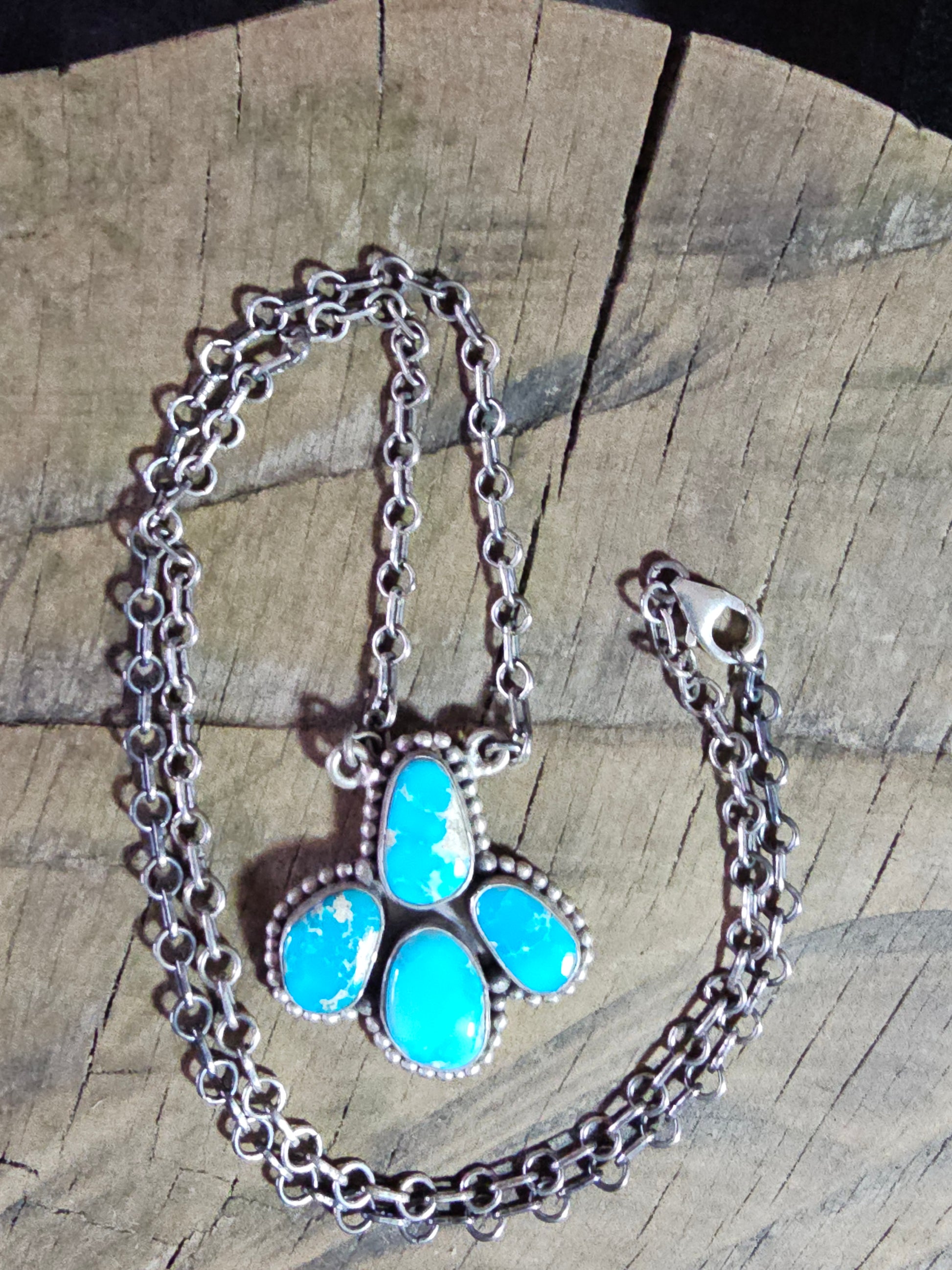 Whitewater Turquoise Brushed Sterling Silver Pendant With Sterling Chain Necklace